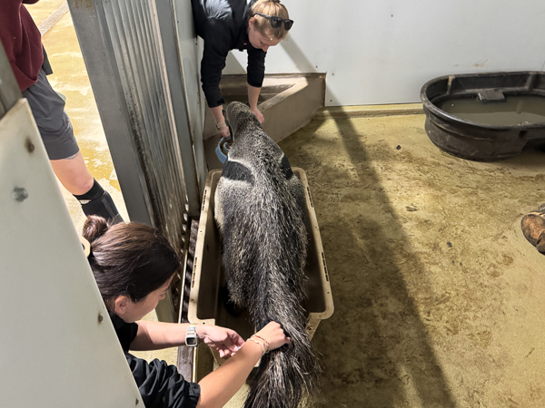 Nashville Zoo Veterinary Team performs a voluntary blood draw on a giant anteater.