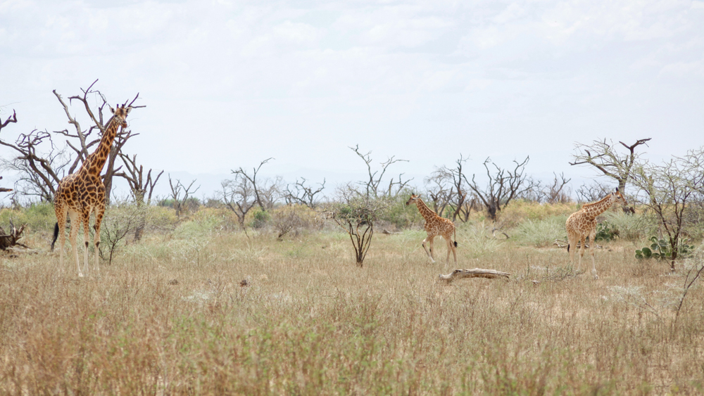 One and two-month-old Rothschild giraffe calves at the Ruko Conservancy