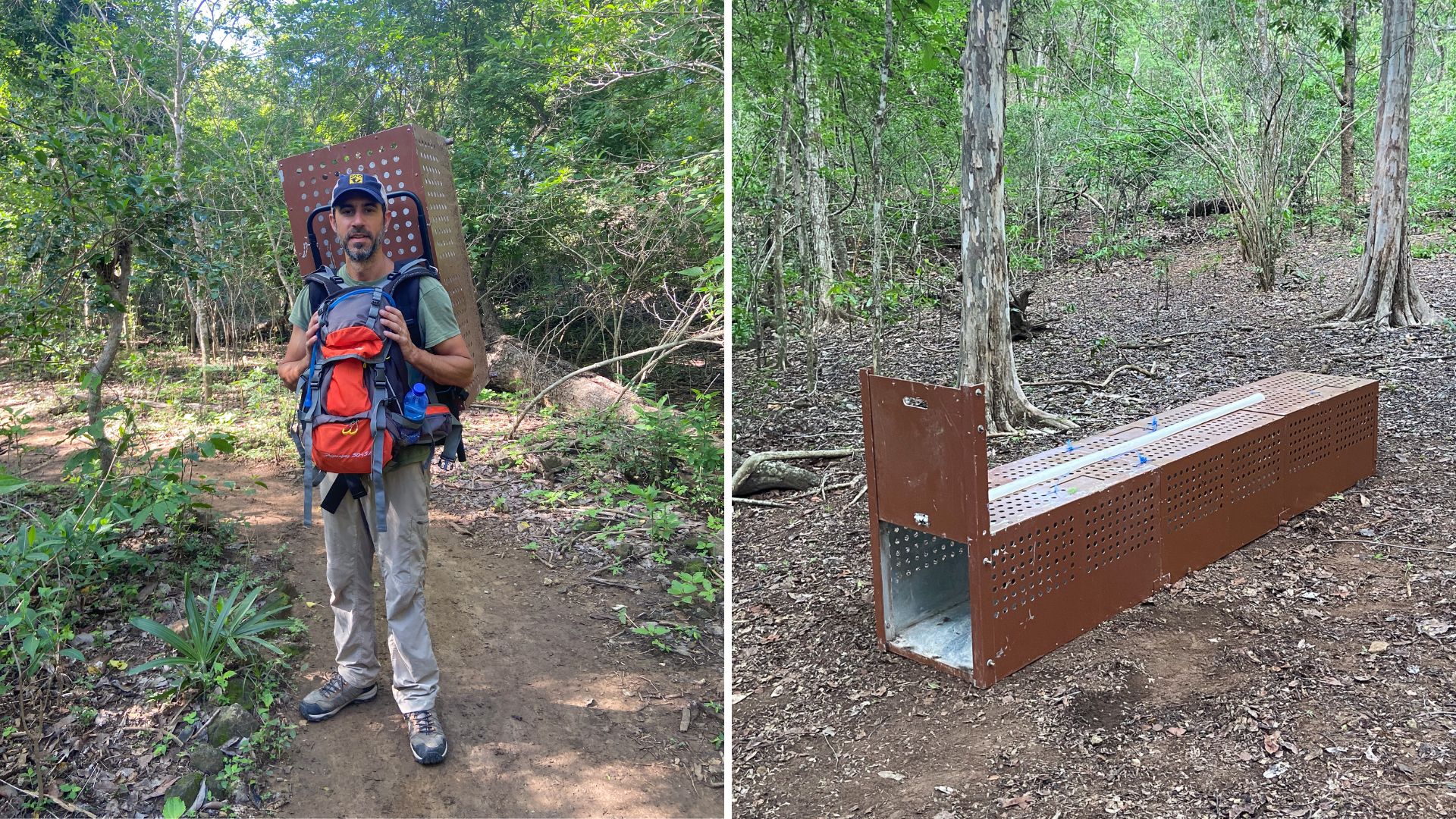 Nick carrying the mobile trap | The Komodo dragon trap set up
