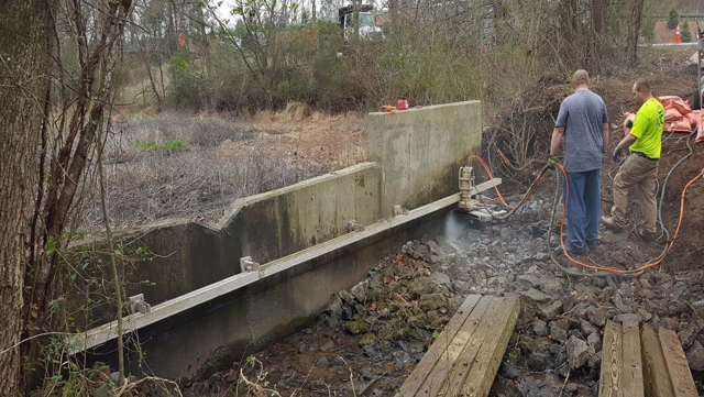 The crew removed two concrete dams by cutting out the concrete in small pieces.