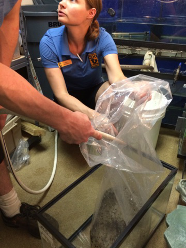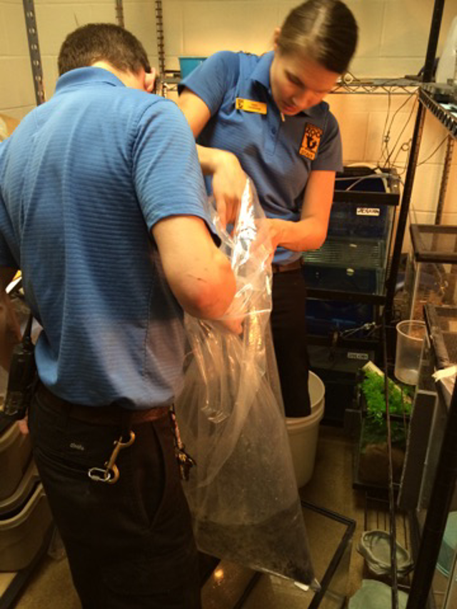 Each tadpole shipment requires months of coordination and planning. On the day of shipment, our herpetology staff transfers tadpoles into bags of water and pure oxygen and ships them to U.S. Fish and Wildlife Services (USFWS) in Puerto Rico. They are driven directly to the release site along with tadpoles from other zoos for release. The May 7 release included over 22,000 tadpoles from Nashville Zoo, Detroit Zoo and Omaha’s Henry Doorly Zoo. After release, the tadpoles are monitored by the USFWS and the Puerto Rico Department of Natural and Environmental Resources (DNER) until they metamorphosed and dispersed from the release pond.