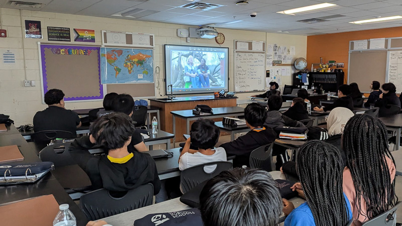 Students at McMurray Middle School participating in a live virtual lesson