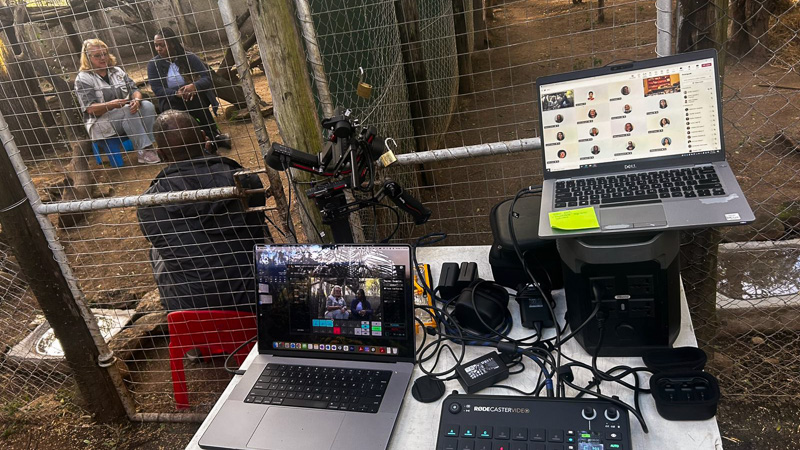 The live stream setup to connect with students in Nashville from Zimbabwe
