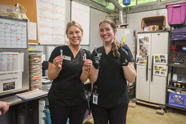 Director of Animal Health, Heather Schwartz DVM and Veterinary Intern, Lauren Vincent DVM.