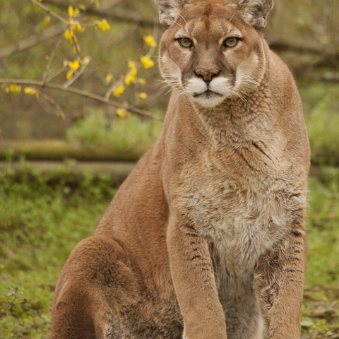Cougars, also known as pumas or mountain lions, are solitary animals that are mostly active at night. At one point, cougars had the largest range of any mammal in North and South America, but with an increase in human population, their range has shrunk to the mostly mountainous regions of the western United States. The Zoo has two cougars on exhibit on Bamboo Trail.
